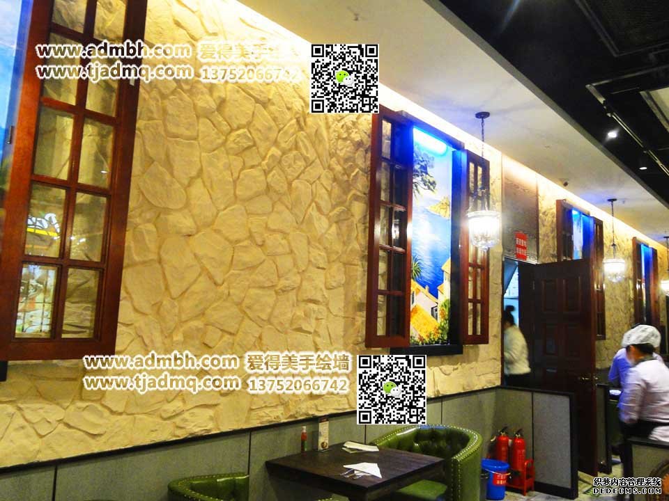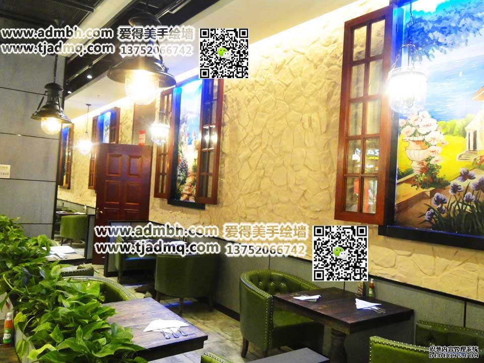 塘沽永旺豪尚豪牛排老板需要畫風(fēng)景畫,在室內(nèi)打開的加窗戶中間畫縱深感的風(fēng)景畫。畫后墻面都是墻體彩繪效果。