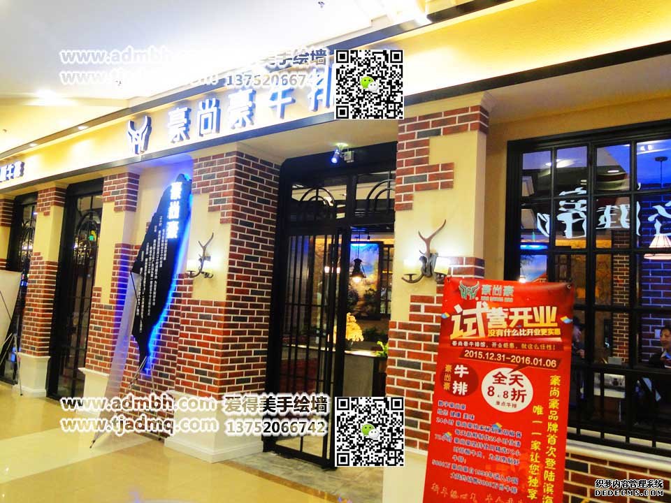 為塘沽永旺超市豪尚豪牛排館畫的天津彩繪!